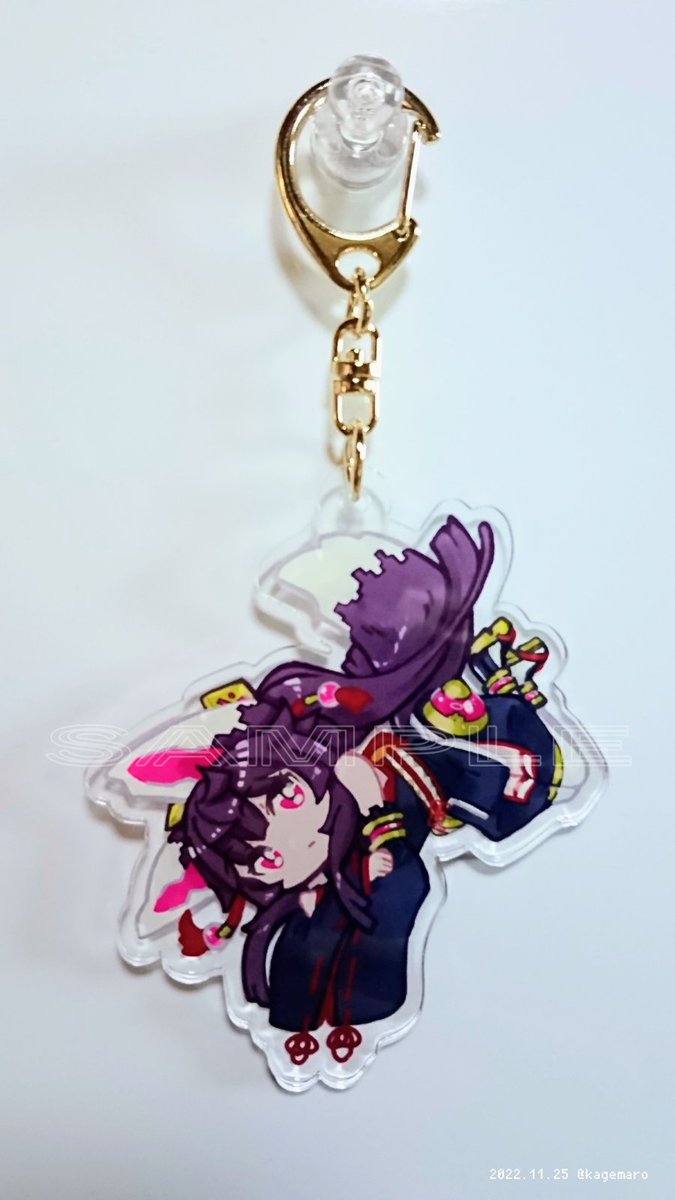 #うちの子 #狐娘 #アクリルキーホルダー の現物が届きましたッ!📸 7cmほどのサイズで尻尾からぶら下がるような位置に金色ナスカンを付けてみました! 試しにカバンに付けてみたら隙間からひょこっと顔を出す感じになって非常に良きです!🦊 #COMITIA142 #コミティア142