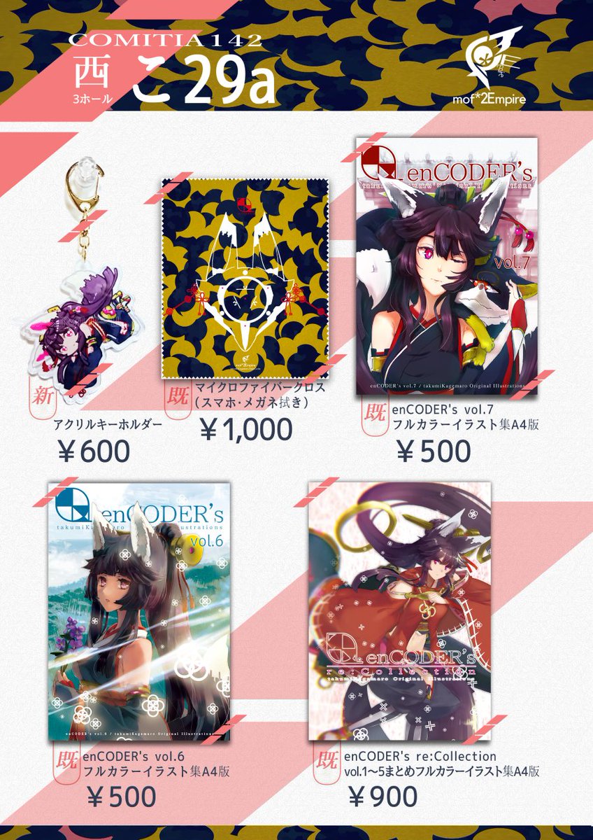 明日の11/27(日)東京ビッグサイト(東京国際展示場)で開催される #COMITIA142 (#コミティア142)に参加しますッ! スペースは 4F西3ホール【こ29a】 mof*2Empire にて既刊とグッズを持って久々に参加させて頂きますッ!