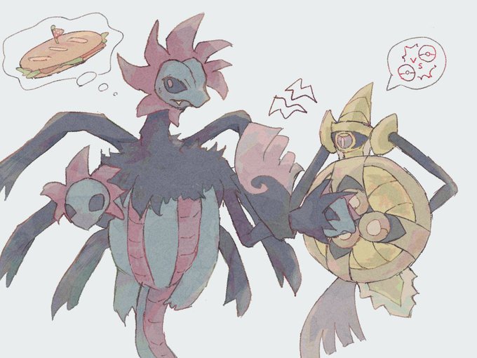 サンドイッチを食べたいサザンドラ🆚バトルに行きたいギルガルド #ポケモンイラスト