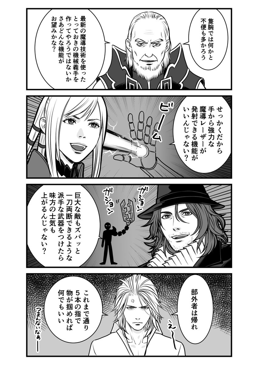 25 105 お兄様の帝国製機械義手にするにあたり、ヴァーサタイルが関わってたと予想してるけど、狂科学者に何をいじられるか怪しいしイライラMAXだったんじゃないだろうか。 22/03/20 21:23
