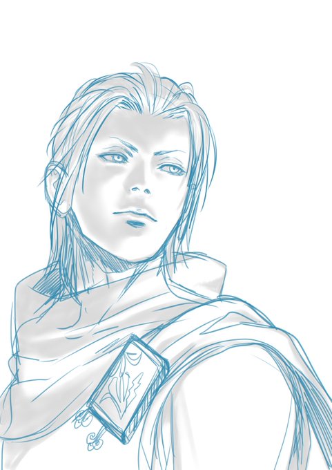 FF零式、今日で11周年だと気づいてお絵描き。 あの殺伐とした世界の中で、話が長い残念なイケメンは一服の清涼剤のよう🍹 あとこの「フム…」みたいにしてるポーズが可愛くて好き。