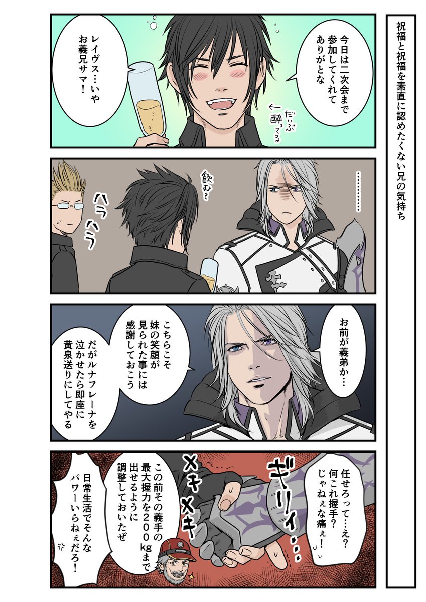 王都陥落時に片腕を失ってもその後すぐに仕事してたお兄様、術後の経過観察も何も無いくらい体力すごそう。 機械義手の装甲はトゲトゲしてるから、服を着替える前につけると困るだろうな。