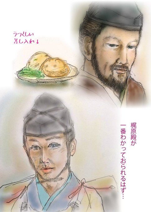 19 79 #鎌倉殿の13人 、昨晩もわくわくして観ました。 第3代鎌倉殿、すてきな方。御家人たちがほおっておきませんね。(頼家様はあの世の鎌倉や寒川で景時さんがほおっておかないかも) ちょっとくすっとシーンが多かったような今回。 梶原さん我慢できなくて来ちゃいました。という妄想絵。 #鎌倉絵 #殿絵 22/09/05 16:43