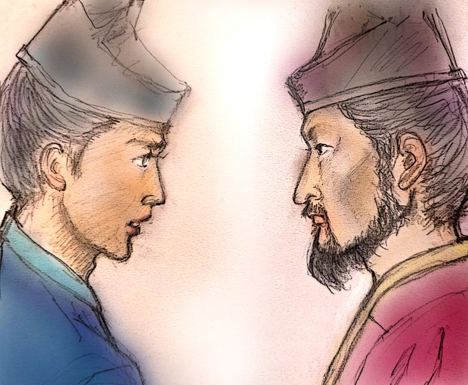 2 5 今日は日曜日だ! #鎌倉殿の13人 の放送日だ。景時さんたちはいなくとも、心を込めて見届けます。 さて、今回の妄想絵は彼岸の鎌倉で別当論争が続いている(?)ようなので色を塗って掲載。なんだかんだ言っても実は結構仲良しだったらいいな… #鎌倉絵 #殿絵 22/11/20 17:02