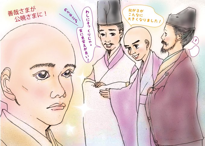 15 61 昨晩の #鎌倉殿の13人 美しいくせつないシーンがたくさんありましたね。実朝様の和歌、景時さんだったらどう言ったのかな…などと考えてしまいました。 景時さんがお支えした(かった)頼家様の息子様が、美しい公暁様になられました…! そんなシーンをあの世の鎌倉で喜ぶ妄想絵です。 #鎌倉絵 #殿絵 22/10/17 17:56