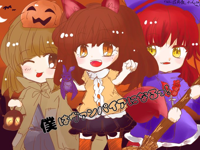#ハロウィン2022便乗人外イラスト・小説祭り 過去に描いたファンアートです(*´∀`*) 林海さんの小説「黒き翼と赤い尻尾 ☽☽☽ヴァンパイアになったはいいけれど……☾☾☾」から三人娘(?) novelup.plus/story/532421749