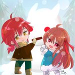 #クリスマス2022小説・イラスト祭り 第二弾イラストは自作から。 🐉痩せると決意をした聖女と食べてやると宣言する竜の王子☃ エマちゃんとブレイド君(∩´∀`)∩雪遊びー✨✨ kakuyomu.jp/works/16817330… メリークリスマス🎄