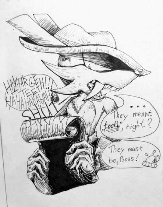 [8|31] Wanted teeth <...special features: ...large teeth...> #sonic #SonicTheHedgehog #sonic_the_hedgehog #fang #nack #fang_the_sniper #nack_the_weasel #sonictober #inktober #sonictober2020 #inktober2020
