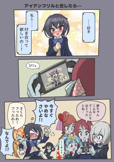 愛ちゃん漫画描きました。 元ネタは某アイドルグループの実写取り込みゲームだよ #ゾンビランドサガ