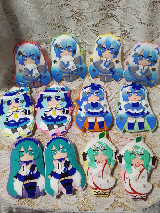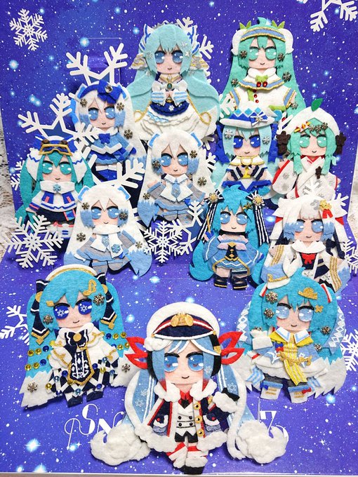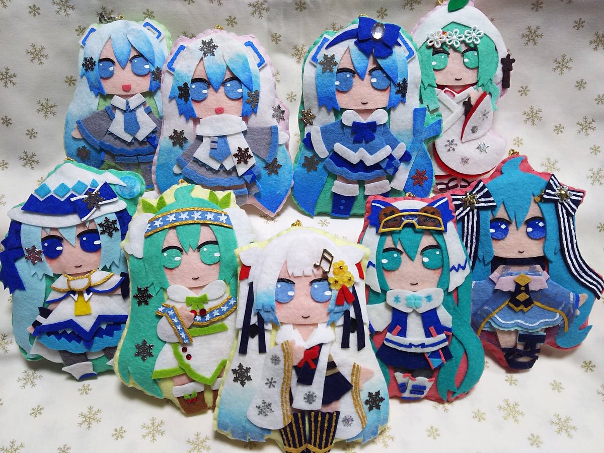 フェルトで作った2010~2022の歴代雪ミクさんを並べてみた❄️ #雪ミク #雪ミク2022