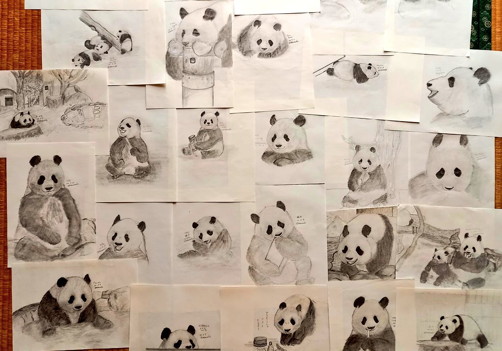 まだあと1日ありますが 5月の #1日1枚パンダ鉛筆画 今月もたくさんのたんたんを描けました☺ 可愛い、可愛いたんたんの表情豊かな写真をアップしてくださる #王子動物園 さまありがとうございます🎵 #今月描いた絵を晒そう