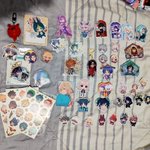 my #CosplayMatsuriFanfair2022 haul!!! having them all laid out made me realize i spent so much ajfjfjsj but my heart is full so its worth it 😌 i bought more but theyre gifts so they weren't included in the pic. I'll tag the artists in the thread!