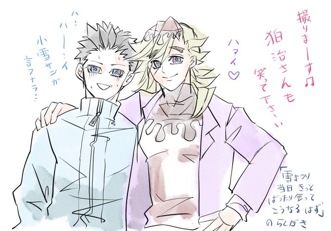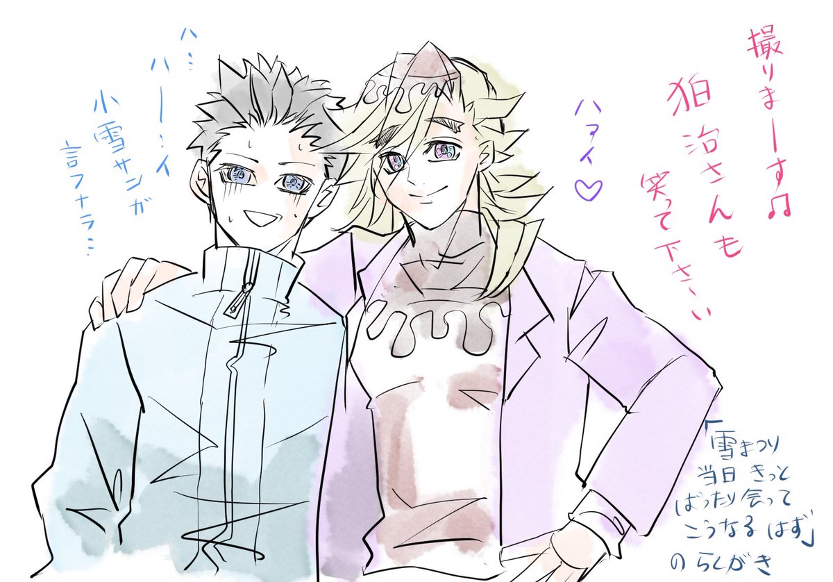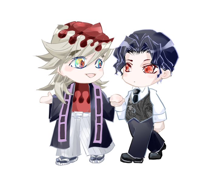 妓&梅救った後のイメージで。 血に馴染めたねじゃあ一緒に行こうかって暫く2人を保護してあげててほしいなー🌈 #6月6日は陸童磨の日