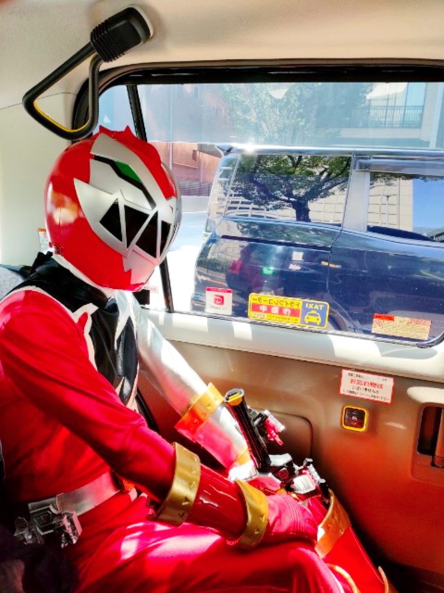 ティラミーゴが乗せてくれなかったのでタクシーで移動💦 タクシー運転手の方がすごく心配してくれて冷えピタをくださいました。とっても優しい…🙇♂️ #リュウソウジャー #コスプレ #コスサミ #コスサミ2023