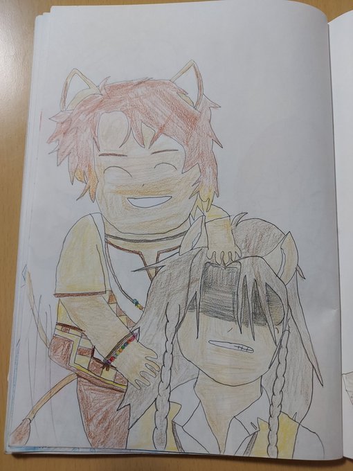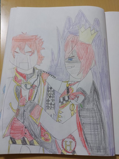 #ツイステファンアート 何故かイデアンの膝の上に座るオル君
