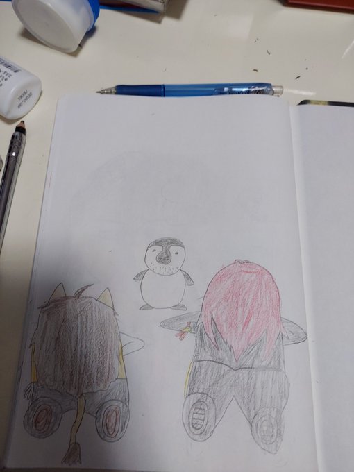 0 4 #ツイステファンアート 皇帝ペンギンにひれ伏す女王と王子 22/02/04 10:53