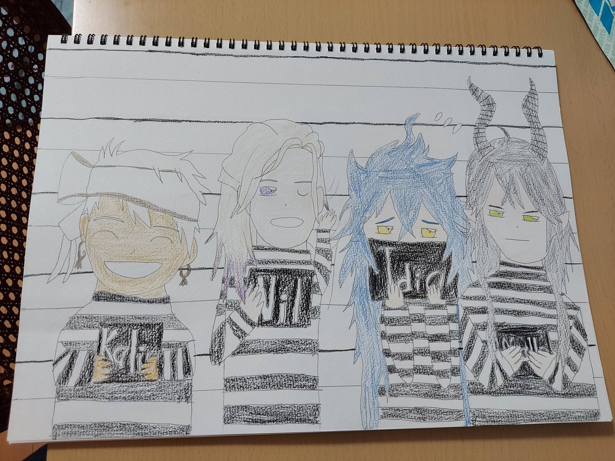 #ツイステファンアート マグショット撮影の寮長たち