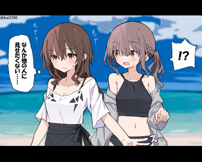 335 2141 おねーさんとギャルちゃんが海辺で戯れてるだけです。 #創作百合 23/07/01 23:10
