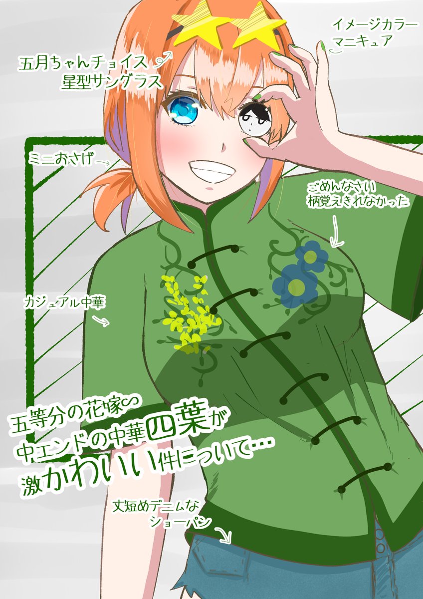 好きなものを楽しく好きなように描いてます 最近クオリティ重視志向で頻度が落ちてるのが気がかり・・・ これからも自分が楽しめるものを描いていくので この機会に是非に~と猛烈にアピってみる← #夏休みはフォロワーさんが増えるらしい #ド直球に言いますがフォローしてください #五等分の花嫁