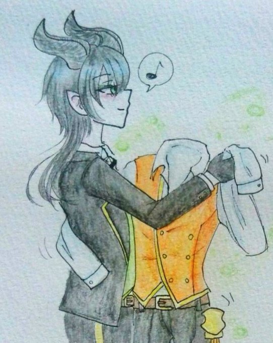 1 11 発掘した水彩色鉛筆使ってみた 1番上手く描けたのは炎 #ツイステファンアート 20/05/06 13:34