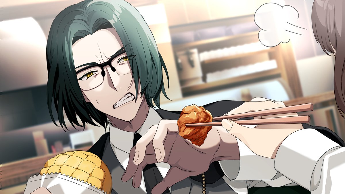 ◆スチルイラスト公開!✨ 「お嬢やめろ!いやだ!俺はそんなもの食わねぇぞ!」 毎回菓子パンやお菓子でお昼を済まそうとするルクリリを心配して唐揚げを食べさせようとするが……? #紅色のエフィアルティス