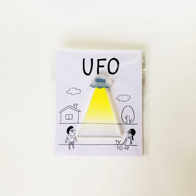 🏬店ポ 𝗖𝗢𝗠𝗜𝗡𝗚 𝗦𝗢𝗢𝗡 洋服やキャップなどのロゴやマーク、小さめの刺繍のうえに付けてください。瞬時にUFOに連れ去られてしまう、夢のあるブローチです。 83s.shop/items/5cc47a14… @mikiji