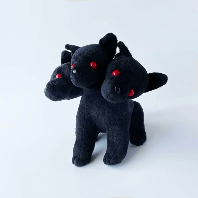\𝗡𝗼𝘄 𝗢𝗻 𝗦𝗮𝗹𝗲/ REAPLUSH / ぬいぐるみ ケルベロス |Black 3つの頭を持つ冥界の番犬ケルベロス。あの猛犬たちのぬいぐるみ、一点一点手作りになります。真っ黒なボディにレッドアイが見事に映えて、複雑なパターンにも関わらずシンプルに仕上がっています 83s.shop/items/61e2ae1b…