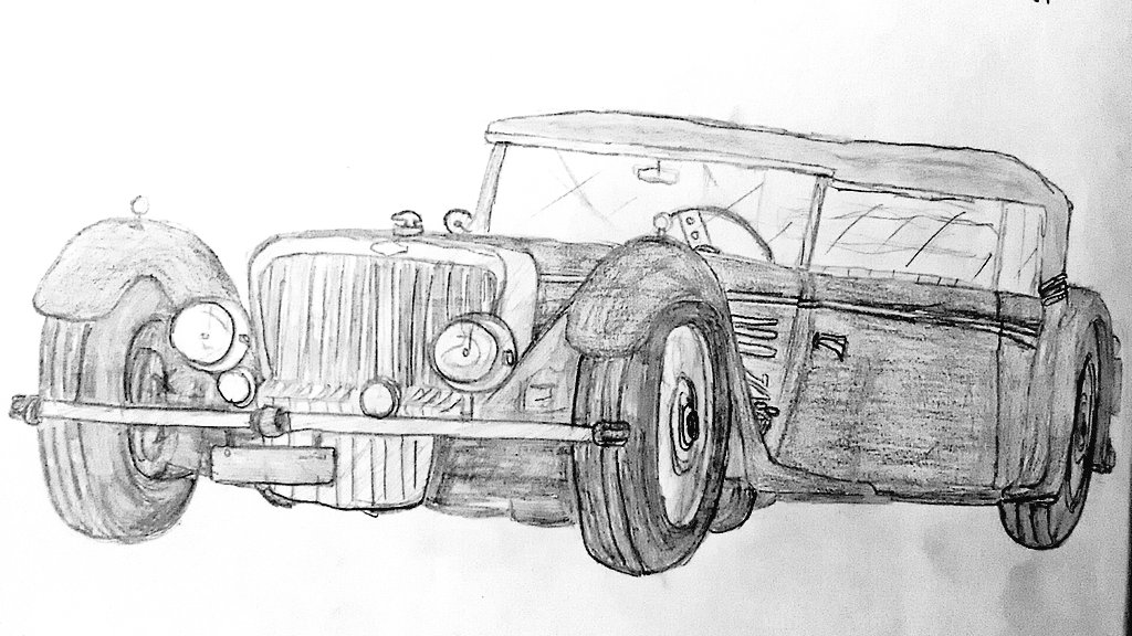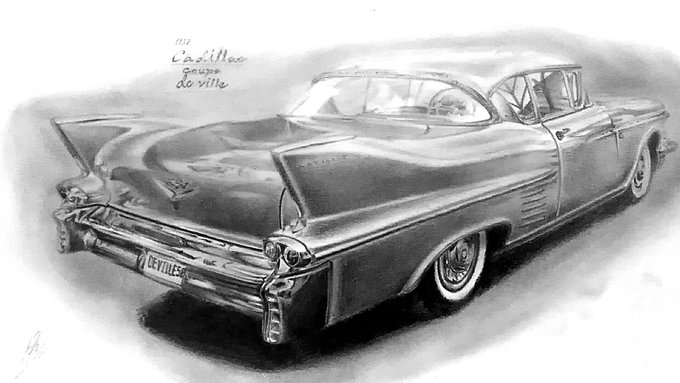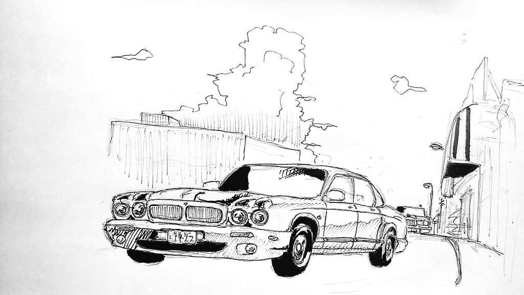 #このタグを見た人は自分が描いたモノクロ絵を貼れ 鉛筆でピカピカした車を描くのが好きです