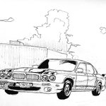 依頼絵 国産現行車のなかではかなり好きのほう 押し出しの強いグリルは50年代以前の空気もあり、サイドのプレスラインはアール・デコの様式を思い出させる。リア上部はシトロエン・DSのオマージュのようであり、これらの各国から蓄積された美の原理に沿った様相はまさしく美しいと言えよう
