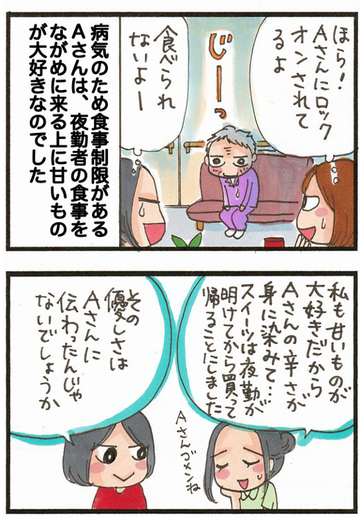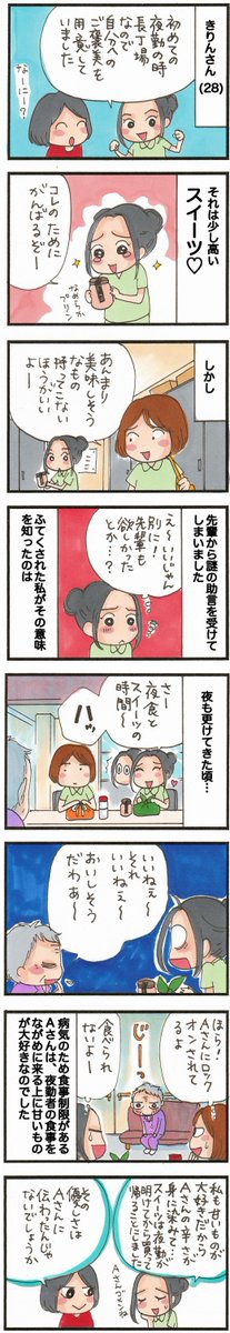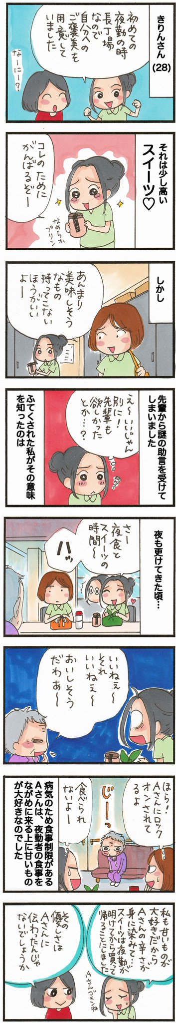 介護職あるある?! 初めての夜勤で、自分へのご褒美スイーツを持参した介護職のきりんさん。 でも、先輩が『持ってこない方がいいよ~』と一言。 え。。休憩中のおやつについて忠告されるなんて。。と思ったら……… #漫画が読めるハッシュタグ bit.ly/3nrKSN8