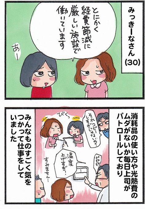暑い日が続くと「節電」が話題になったりしますが、何事もやりすぎは考えものです…… 経費削減に厳しい介護施設で働くみっきーなさん。 エアコン設定温度で上司と衝突! #漫画が読めるハッシュタグ #マンガが読めるハッシュタグ bit.ly/3BRC2kd