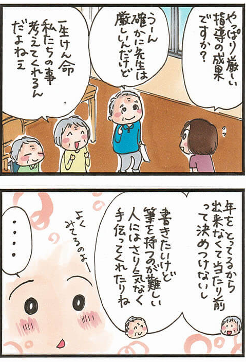 書道ボランティアの先生は、老人ホームのお年寄りにも厳しく容赦なし! 横で見ているスタッフはハラハラしちゃいますが、厳しさだけじゃない、愛情が感じられるようで…… #漫画が読めるハッシュタグ #マンガが読めるハッシュタグ #介護 bit.ly/3xrD7vu