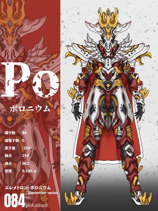 #オリジナル怪人 エレメトロン・ポロニウム 頭はキセノン、胴はマイトネリウム、素体にシーボーギウム...というキメラ怪人に、王冠や嘴、マントを新たにつけて新たな怪人に仕上げました。 イメージソースはポーランドの国章からになります。 なんかめっちゃ強そうに...() #元素で怪人描いてみた