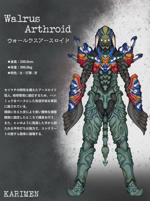#オリジナル怪人 エレメトロン・ニホニウム(再リメイク) 真打登場!! 5月最後はこの子です!! 前回のがあまりに鎧すぎて納得いかなかったので、怪人らしくさいデザインしました 前よりも自信を持って提供できます() #元素で怪人描いてみた