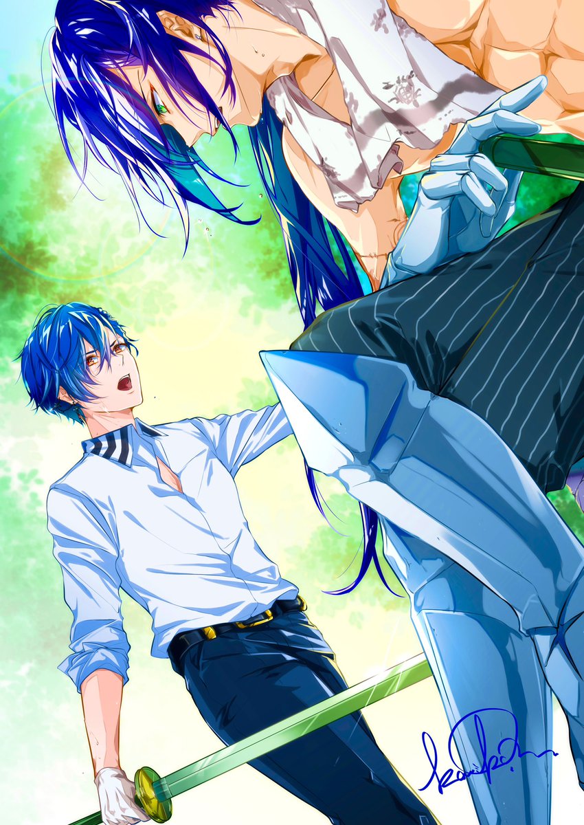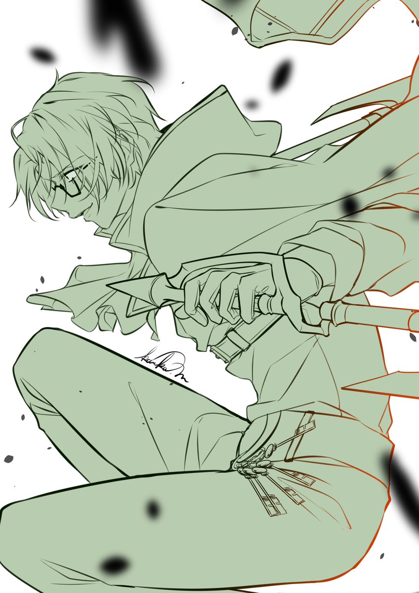 14 161 落書き ⚔️ お話してたら、とんでもなく描きたくなってしまった末の勢いよく描き殴り! ⚔️くんも戦闘シーンカッコ良さそうだなー✨ 23/07/31 01:57