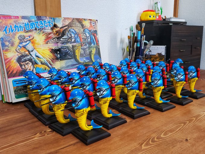 7月27日 に開催される「UMAに遭遇したい展👽」にガレージキット #イルカがせめてきたぞっ を出品します🐬 完成品の見本展示とガレージキットの販売を行います😊他にも作家さんの👽をテーマにした素敵な作品が並びます。 twitter.com/kaibutsushop/s…