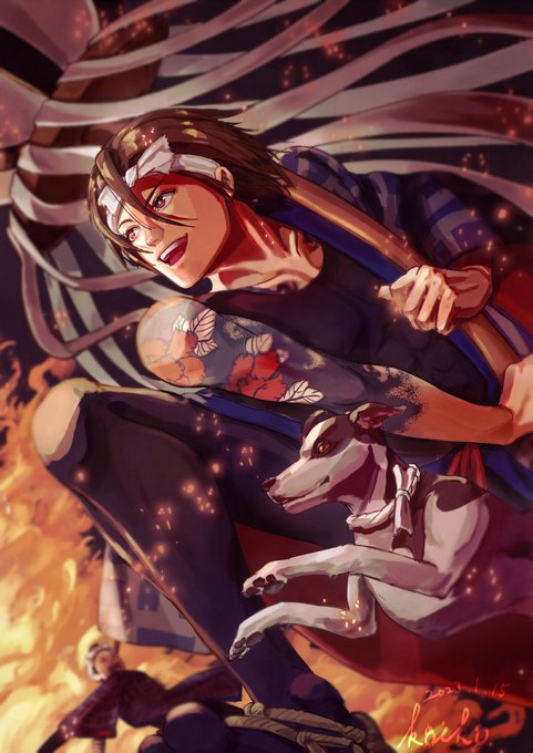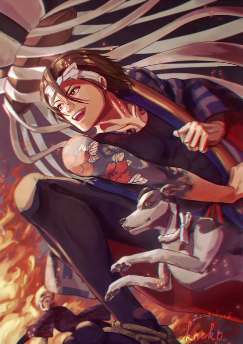 『火事と喧嘩は江戸の花』 は組の新吉さんは犬を連れていたそうです ”Fire and fighting are the flowers of Edo." Mr. Shinkichi of the Hagumi had a dog with him. #illustrationart #art #冬の創作クラスタフォロー祭り #絵柄が好みって人にフォローされたい