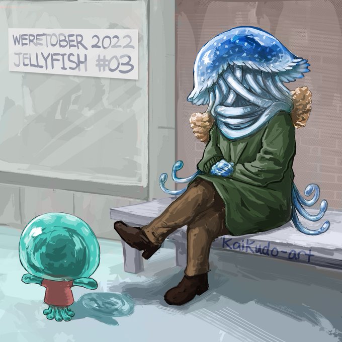 Had idea Splatoon shopkeep but ended up changing Little guy leftover from that concept Prompt @TFiddlerArt #weretober #weretober2022 #jellyfish #werejellyfish #splatoon #inktober #inktober2022 #speedpaint #digitalart #illustration #art #drawing #sketch #cartoon #characterdesign