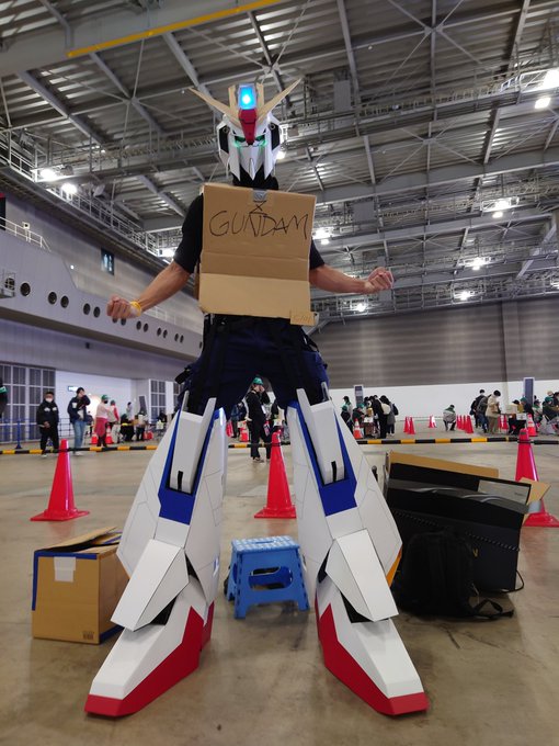 ゼータガンガム 夏見たときは顔とダンボールだったのに足が増えてた。 クオリティ高い 全身出来上がるのが待ち遠しい #コミケコスプレ