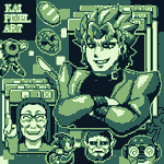 64X64頭像系列 每個頭像都是以64X64尺寸 並且只用4個顏色所繪製 - 暴太郎戰隊完結篇了 真是捨不得 近年來覺得劇情最棒的特攝劇 每個角色都讓人很喜歡 期待暴太郎VS全開者了 #暴太郎戦隊ドンブラザーズ #ドット絵