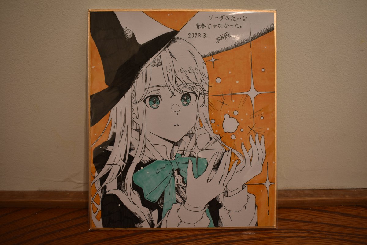 3 7 色紙イラストを描きました 右の子は旅立ちましたが、左の魔女さんはまだ残ってます #ソーダみたいな青春じゃなかった 23/03/25 15:11