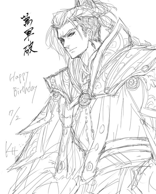 38 85 今日は夜お絵描きできないからとりあえずおめでとうだけ言っておきます(´・ω・`) 萬軍破ハピバ! #サンファンファンアート 23/07/02 16:39