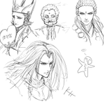 寝る前に落書きしたので満足(´・ω・`)人選は思いついたキャラwwww 明日から初出勤なので頑張る(`・ω・´)