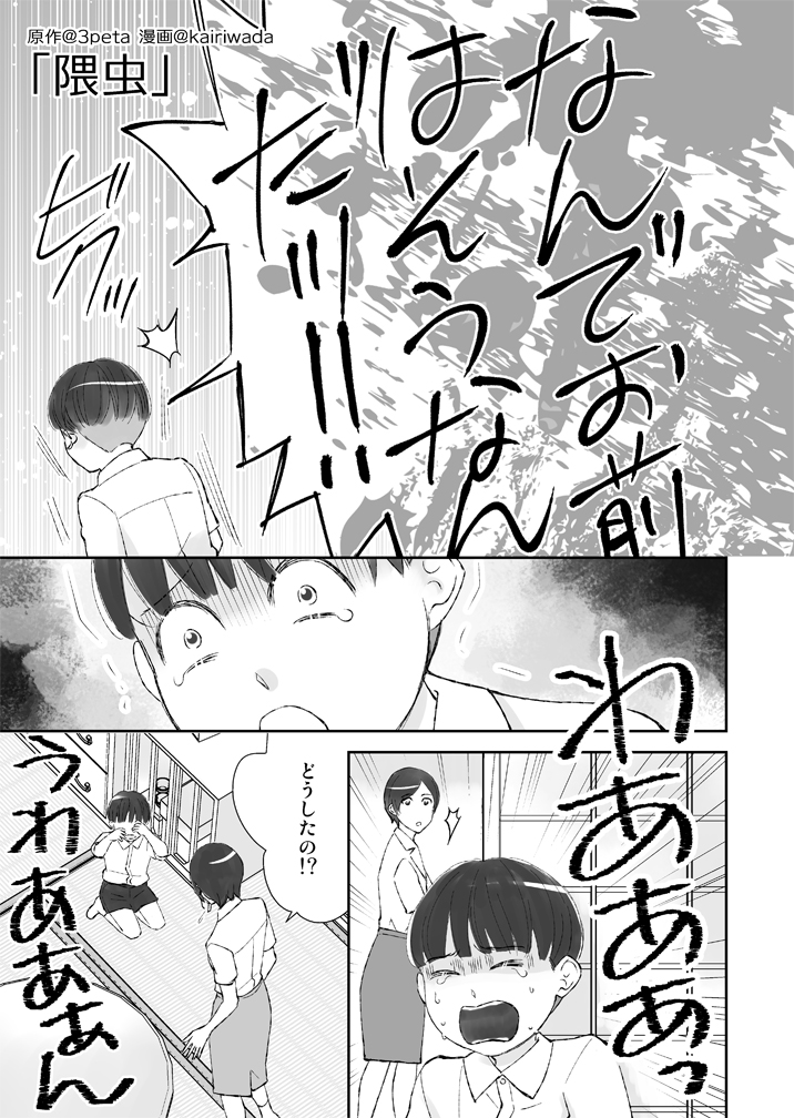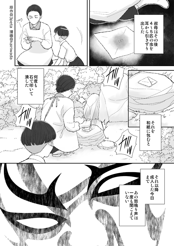 原作:神沼三平太(@3peta)「恐怖箱 蝦蟇」(竹書房文庫)収録「隈虫」漫画:和田海里(@kairiwada )2/2 #実話怪談 #漫画が読めるハッシュタグ
