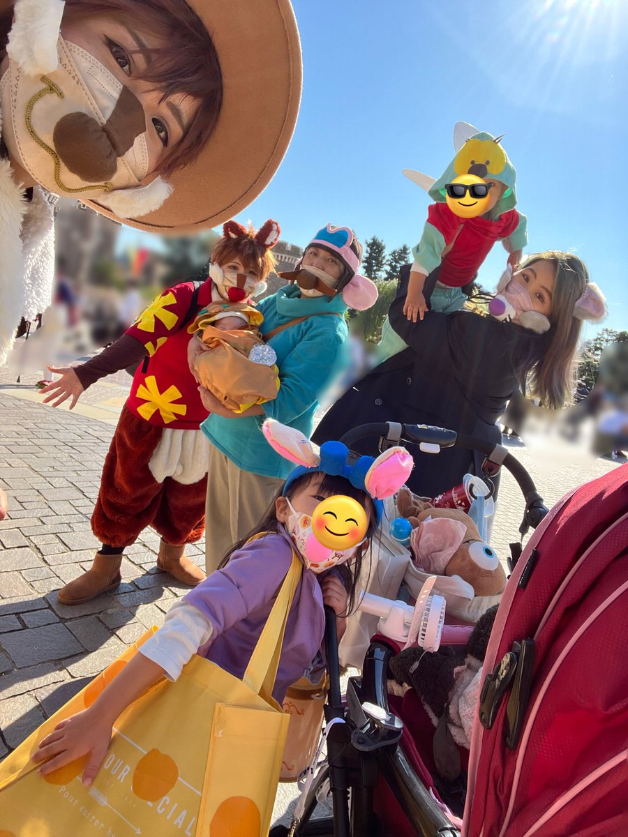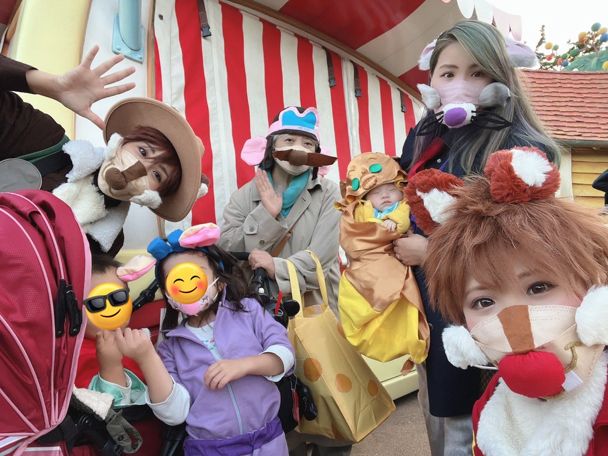 遅報ですが!3年ぶり #Dハロ仮装 満喫でした〜!!!リベンジ!2匹増えたので笑 ちょっとキャラ変もありつつしきかいは変わらずチデでした🥜新キャラまで分かった人はすごいぞ! おばたちに付き合ってくれたチビズは一応スタンプで😊 #Dハロ2022 #レスキューレンジャー