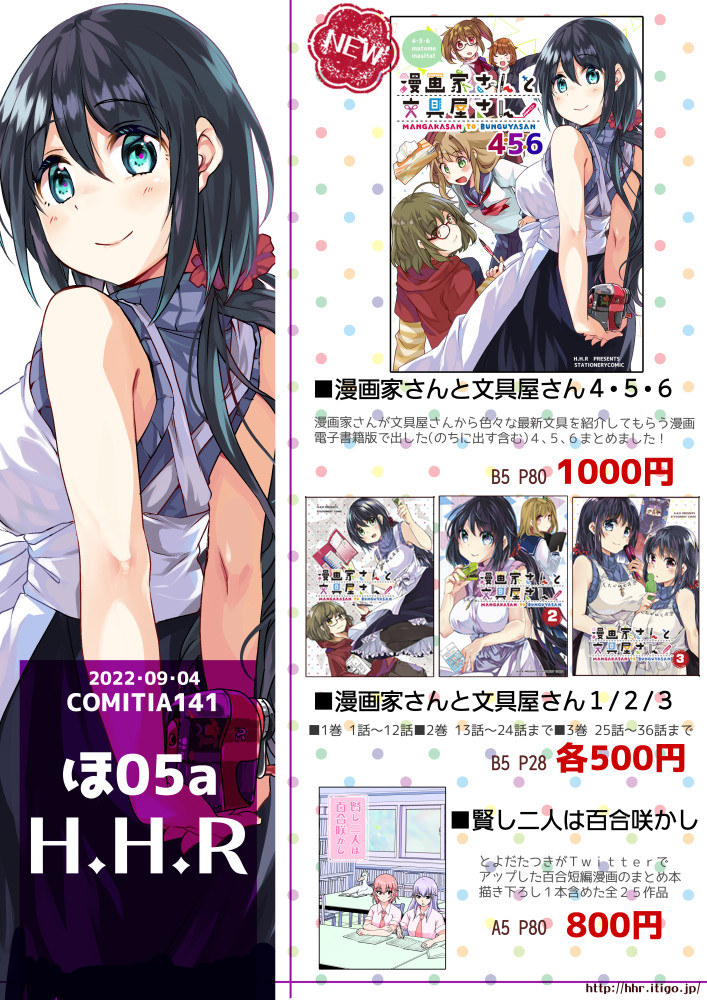 9月4日のコミティア141 海産物はお家でお留守番なんですがたつきがおります〜「ほ05a H.H.R.」です 新刊は「漫画家さんと文具屋さん」456ですっ既刊はお品書き見てね! よろしくお願いしまっす! #漫画家さんと文具屋さん #コミティア141