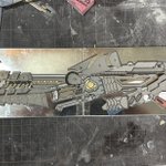 多分強襲型ドミネーターのスコープに似た形状してるが、パーツの位置などからこれまでにアニメでは出てない形態(強襲型デコンポーザーとか)か全く新しいものか… シビュラシステムのロゴが反転してるけどw 2期の時はDOMINATORが反転してた twitter.com/sokonokatabuts…
