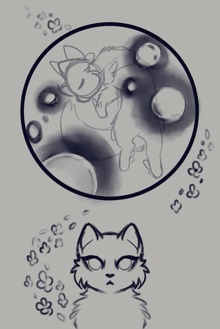 Day 15: Moon Glad i took the extra time to work on this. This is sort of a homage to an old OC, Omen! The cat below her is her old design~ #warriors #spooktober #inktober2022 #inktober #moon #purple #CatsOfTwitter #art #digitalart