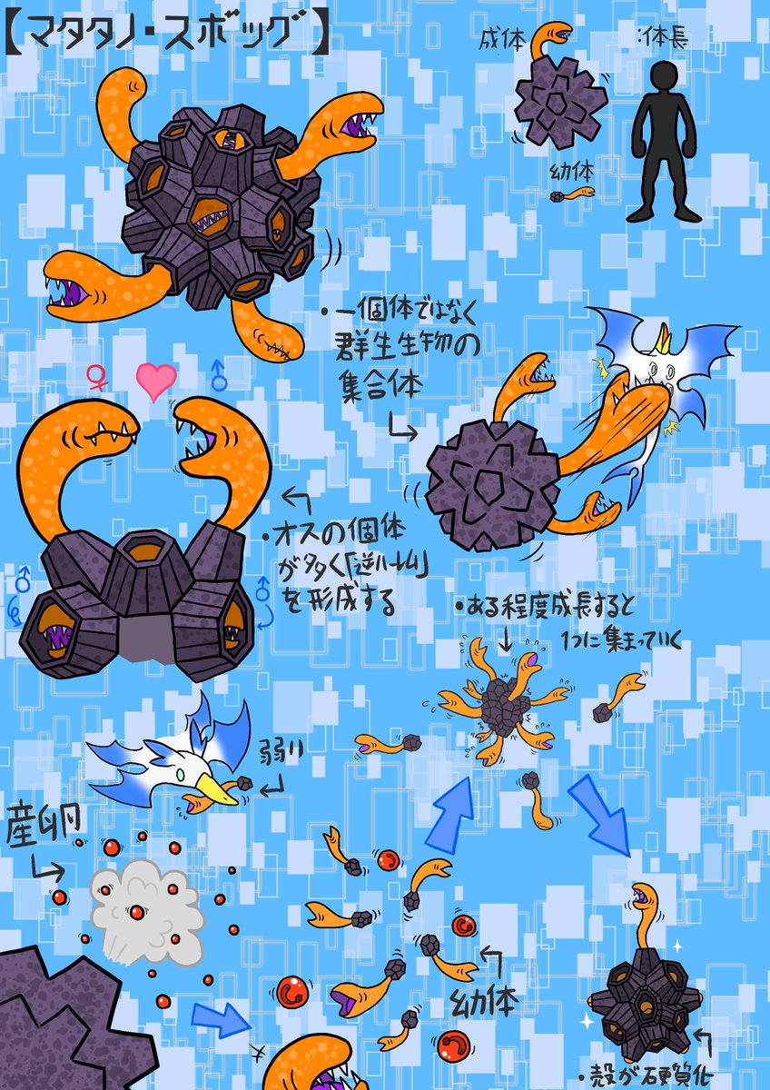 #創作 #オリキャラ #絵描きさんと繋がりたい #私の作品もっと沢山の人に広がれ祭り 新作の完成が遅れているため最近自分を知ってくれた方への過去絵宣伝を 「宇宙生物」というカテゴリーのモンスターの生態や亜種など妄想して描くのがめっちゃ好きです