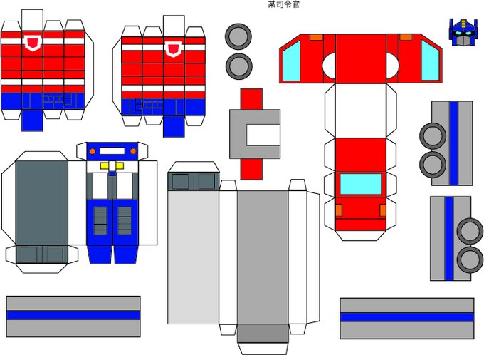 64 137 学生時代に作ったペーパークラフトTFが出てきた A4一枚で収まり、ちゃんと完全変形します 折線は全部山折りでOK 20/06/24 00:37